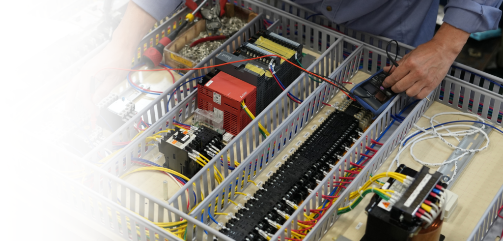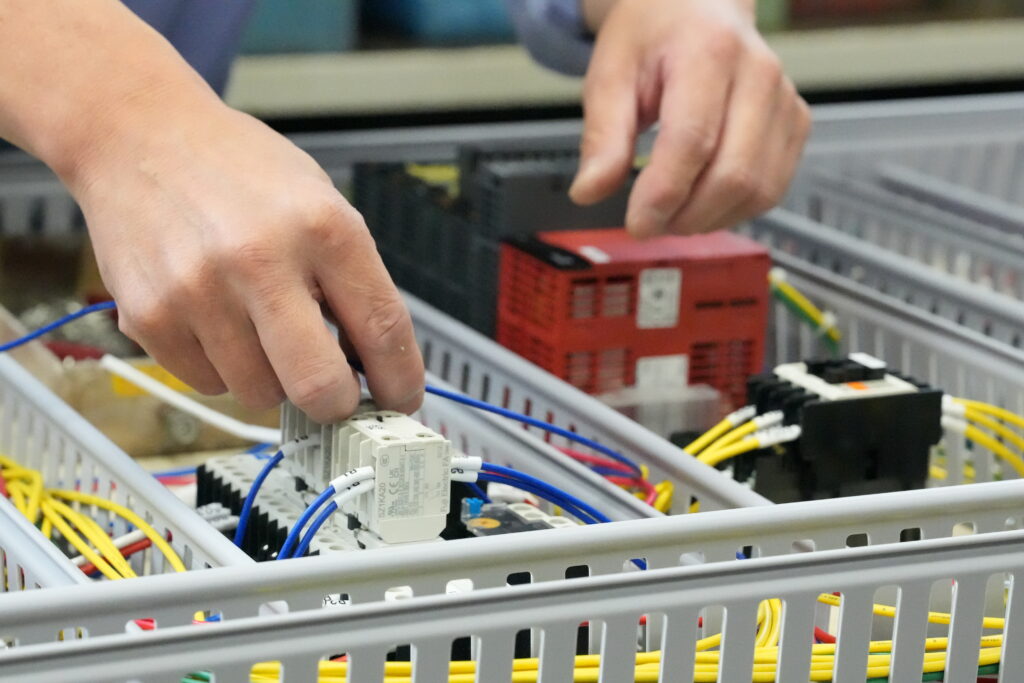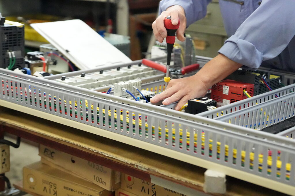当社は、制御盤の製作から自動制御プログラム・設計、さらには納品後の現地工事や運転調整まで、すべて一貫して行える体制を整えています。