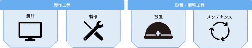 設計・製作・設置・調整までを自社で完結させることで、お客様にとってスムーズかつ信頼性の高いサービスを提供し、設備の最適化と効率化を実現しています。